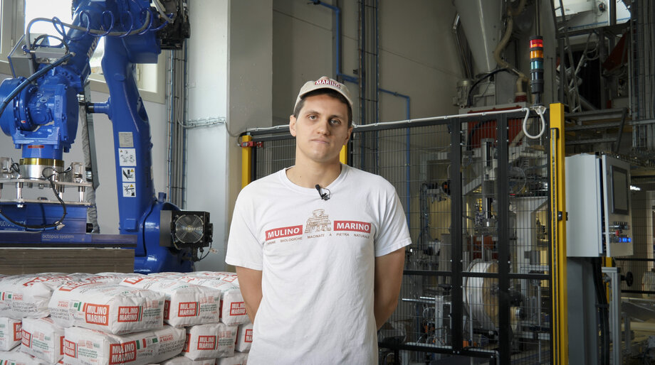 To modernize and make the flour sack palletizing business more effective, the company decided to equip itself with a new system capable of handling the company's high production. With the support of SF Automazioni, an integrator that Mulino Marino had already chosen some time ago as a solution was devised to automate the palletizing activity through the use of a robot arm intended to serve 7 of the 10 mills in use.