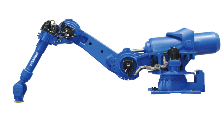 El robot Motoman GP165R es un robot de montaje en plataforma que se caracteriza por su flexibilidad y que puede descargar piezas de trabajo desde arriba.