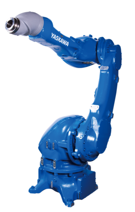 El Motoman MPX2600 proporciona una carga útil de 15 kg (muñeca) y 20 kg (eje U), lo que permite el montaje de múltiples pistolas y campanas grandes en este robot de tamaño mediano.